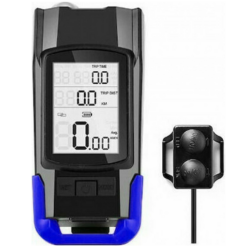 Επαναφορτιζόμενος Φακός Ποδηλάτου Led με Κόρνα και Ασύρματο Ταχύμετρο 3 σε 1 BK-1920 – Μαύρο/Μπλέ