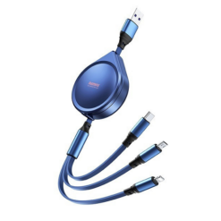 Remax Water Drop RC-C018 Flat / Retractable USB to Lightning / Type-C / micro USB Cable Μπλε 1.2m