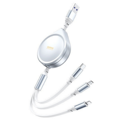 Remax Water Drop RC-C018 Flat / Retractable USB to Lightning / Type-C / micro USB Cable Ασημί 1.2m