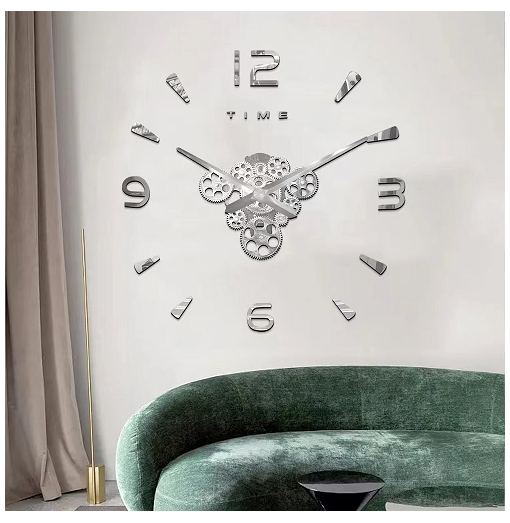 Αυτοκόλλητο ρολόι τοίχου 3D DIY 60-120cm ZH03410 ασημί