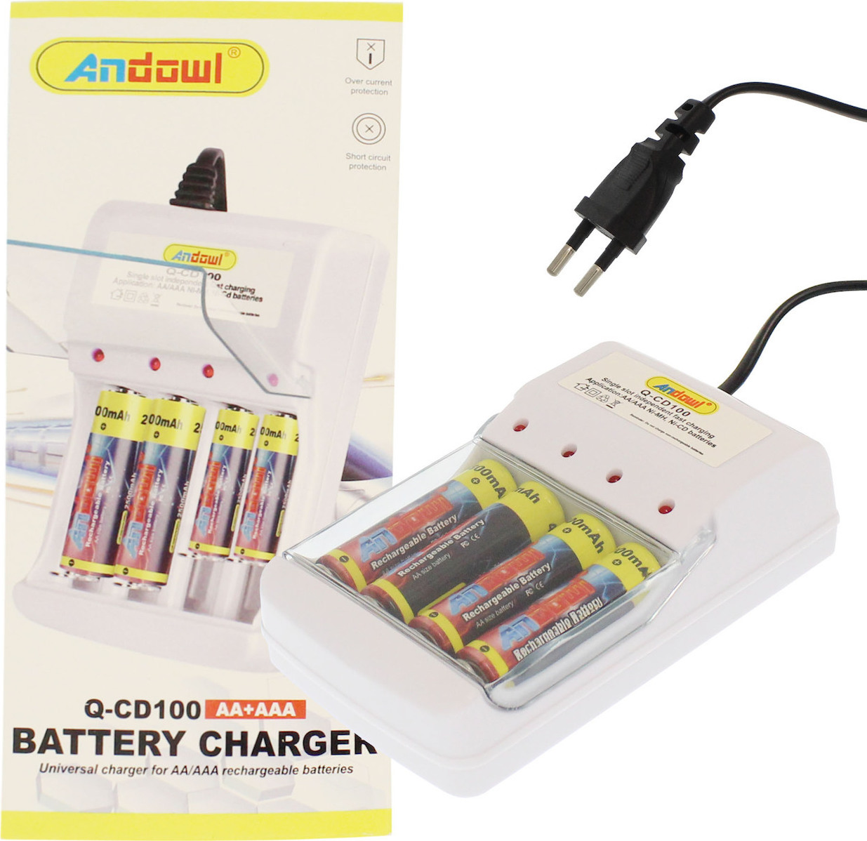 Andowl Φορτιστής 4 Μπαταριών Ni-MH Μεγέθους AA/AAA σε Λευκό χρώμα Q-CD100