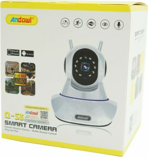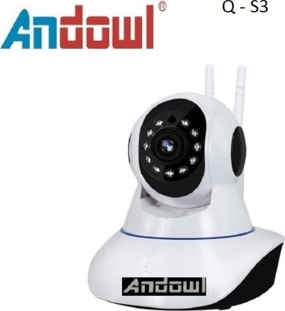 Η κάμερα ασφαλείας Q-S3 της Andowl είναι ψηφιακή (IP), συνδέεται στο δίκτυο σας ασύρματα μέσω Wi-Fi και τοποθετείται σε επίπεδες επιφάνειες.