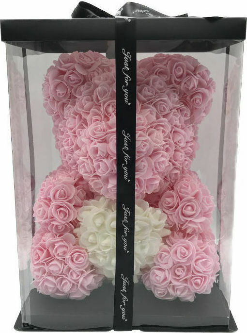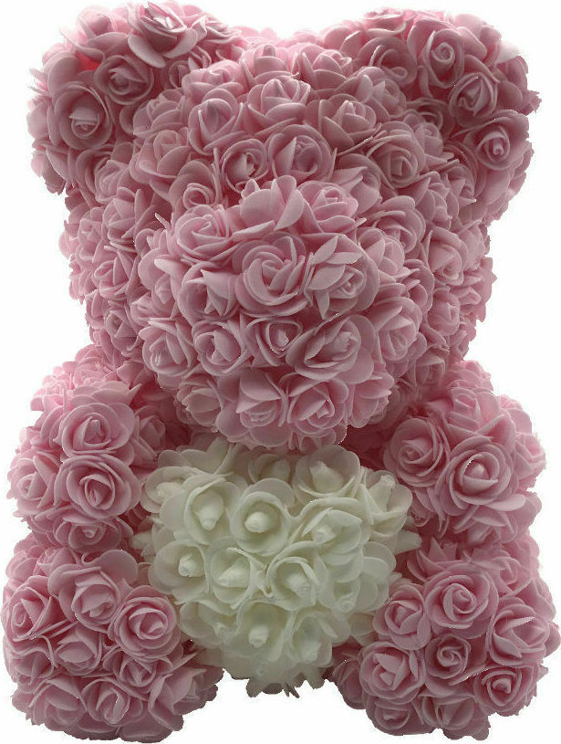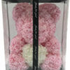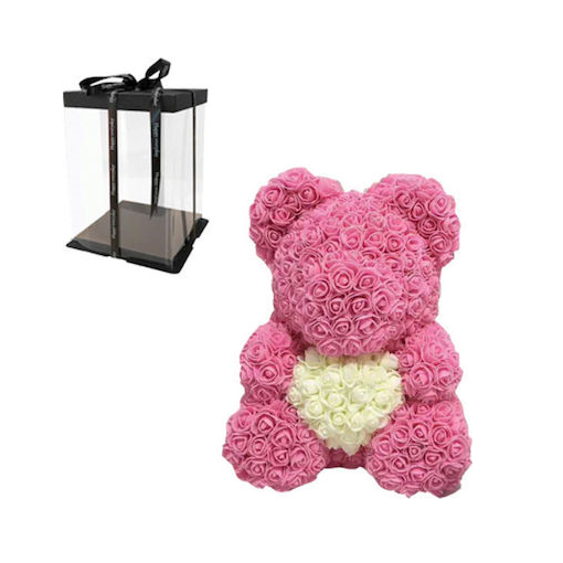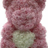 Αρκουδάκι από Τριαντάφυλλα Ροζ με Λευκή Καρδιά 40cm