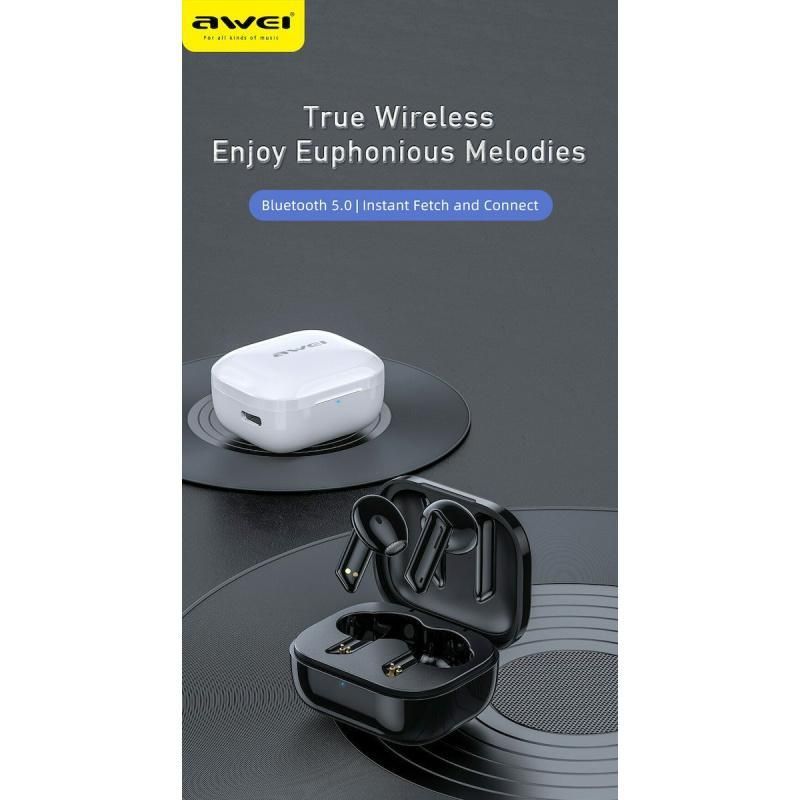 Τα νέα αδιάβροχα ακουστικά Bluetooth της Awei® TWS (True Wireless Stereo). Χωρίς καλώδια, χωρίς δεσμεύσεις. Mπορούν να χρησιμοποιηθούν σαν 2 μεμονωμένες συσκευές ή σαν ζευγάρι. Με θήκη που φορτίζει τα ακουστικά, εργονομικό σχεδιασμό για μεγαλύτερη άνεση στη χρήση και υψηλή ποιότητα στερεοφωνικού ήχου!