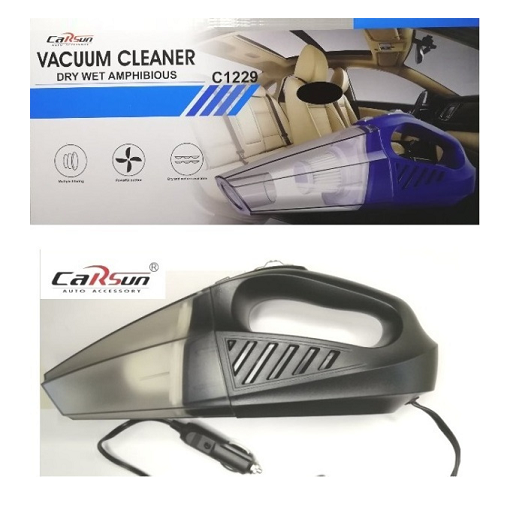 Carsun Σκουπάκι Αυτοκινήτου Στερεών / Υγρών C1229 με Καλώδιο Αναπτήρα 12V Μαύρο 81006CRS80DF