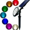 Ηλιακός προβολέας LED σε μαύρο χρώμα, με ισχύ 6W. Ο φωτισμός του μπορεί να πάρει διάφορες αποχρώσεις συνδυάζοντας τα χρώματα κόκκινο, πράσινο και μπλε.