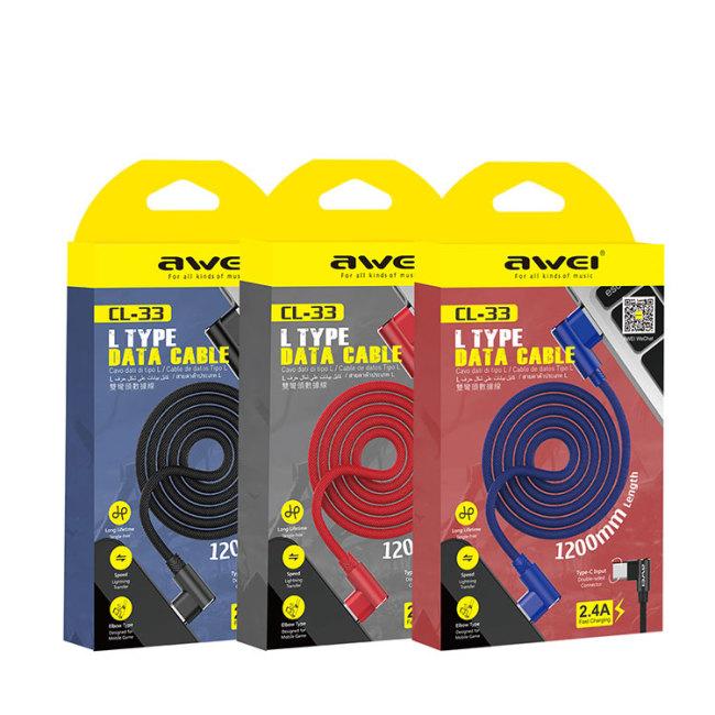 Καλώδιο Γρήγορης Φόρτισης και Μεταφοράς Δεδομένων Awei CL-33 1.2m L Type Type-C – Χρώμα: Μπλε