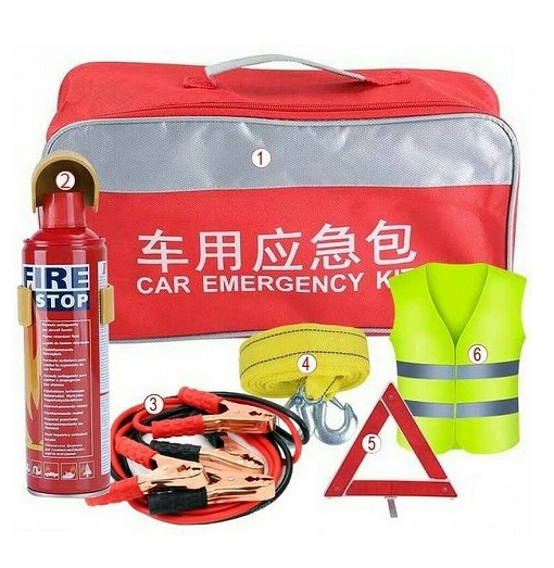 Κιτ Έκτακτης Ανάγκης Αυτοκινήτου με Πυροσβεστήρα Αφρού – Γιλέκο Ασφαλείας – Καλώδια Μπαταρίας – Iμάντα Ρυμούλκησης & Τρίγωνο