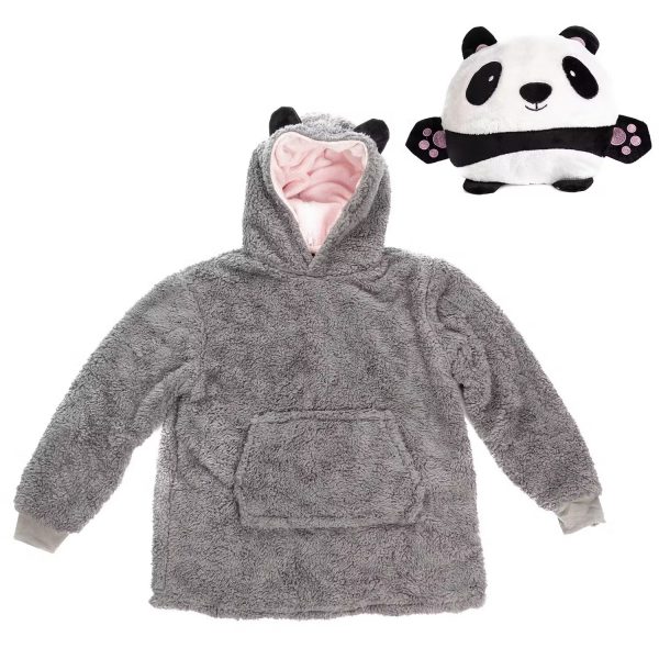 Παιδικό Λούτρινο Αρκουδάκι που γίνεται Φούτερ Fleece – Panda Γκρι