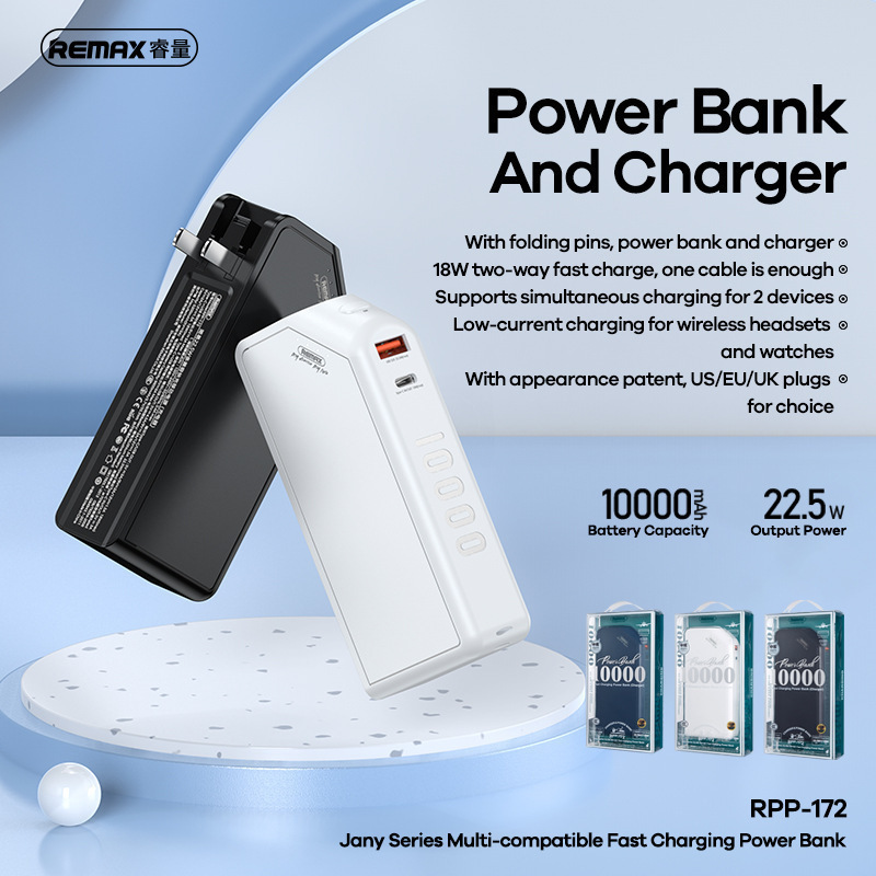 Remax Power Bank RPP-172 10000mAh 22.5W με Γρήγορη Φόρτιση και USB-C Μαύρο