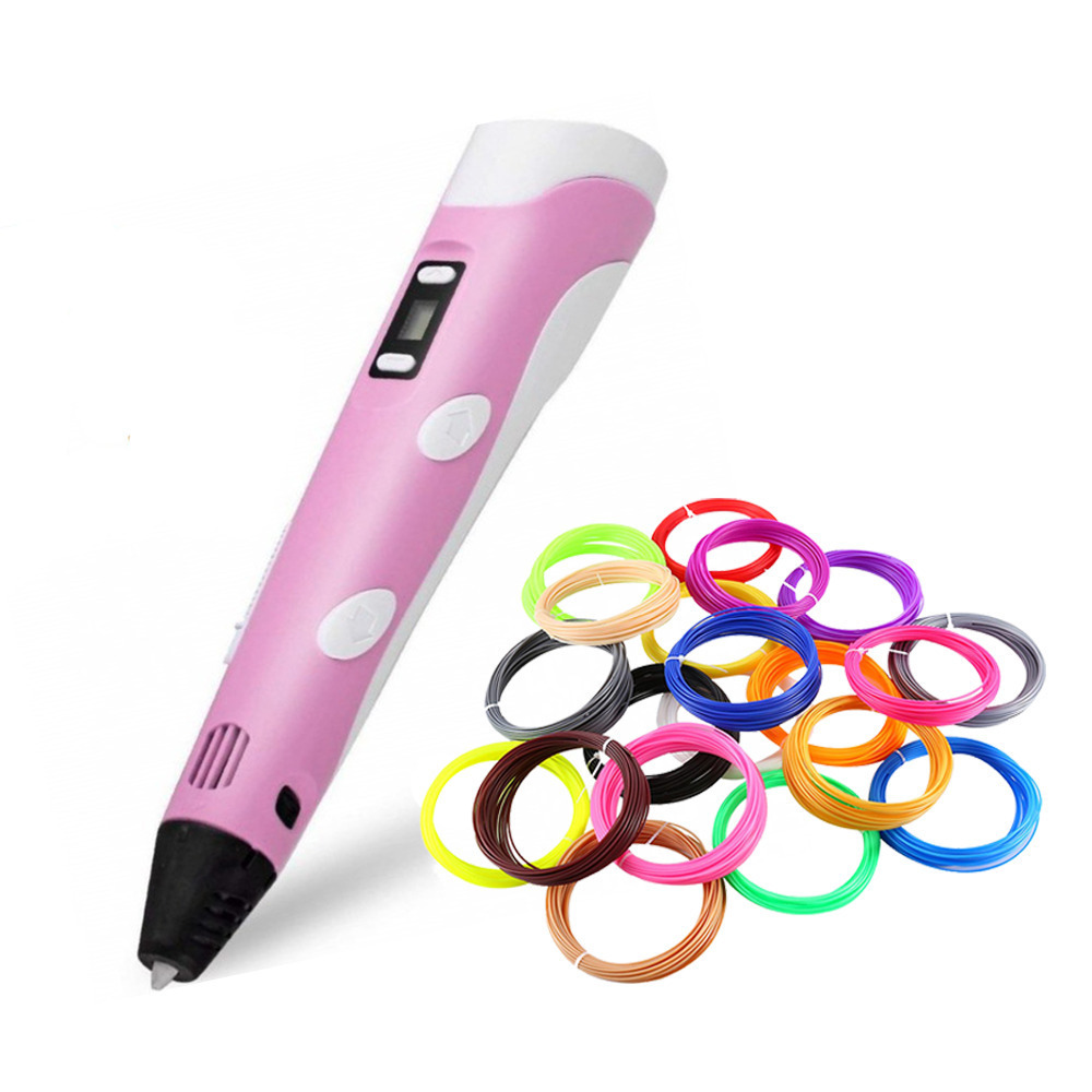 Σετ 3D Pen Στυλό Τρισδιάστατης Εκτύπωσης με 10 Επιπλέον Νήματα Ροζ που χρησιμοποιεί πλαστικό νήμα το οποίο θερμαίνεται σε θερμοκρασία τήξης και δημιουργείτε ότι φαντάζεστε.