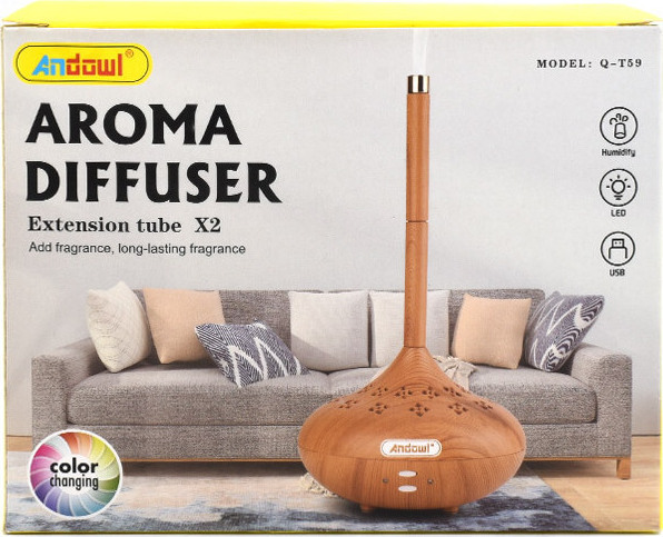 Προϊόν: Συσκευή Αρωματοθεραπείας – Υγραντήρας 150ml & Φωτισμός LED Andowl Q-T59 – Φυσικό Ξύλο
