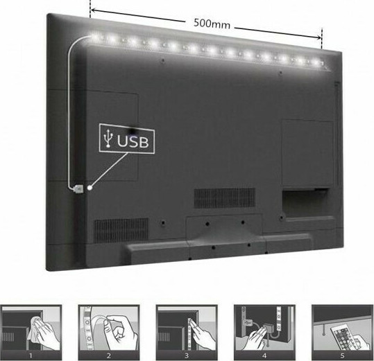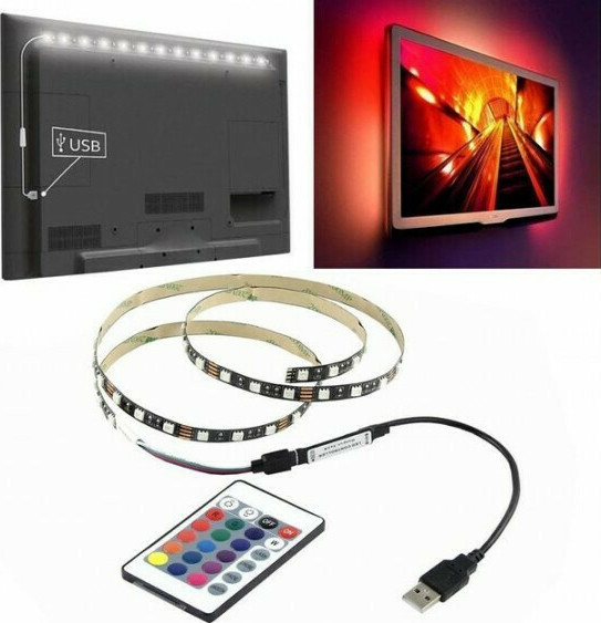 Ταινία Led με RGB φωτισμό που μπορεί να πάρει διάφορες αποχρώσεις συνδυάζοντας τα χρώματα, κόκκινο, πράσινο, μπλε. Η ταινία έχει αδιάβροχη προστασία βαθμού IP65 που προσφέρει πλήρη προστασία από πιτσιλιές, υδρατμούς και μπορεί να τοποθετηθεί ακόμη και σε κουζίνες και μπάνια. Στη συσκευασία περιλαμβάνεται εκτός από την ταινία, τροφοδοτικό USB (5V) και τηλεχειριστήριο με το οποίο μπορείτε να ελέγχετε το χρώμα και την ένταση.